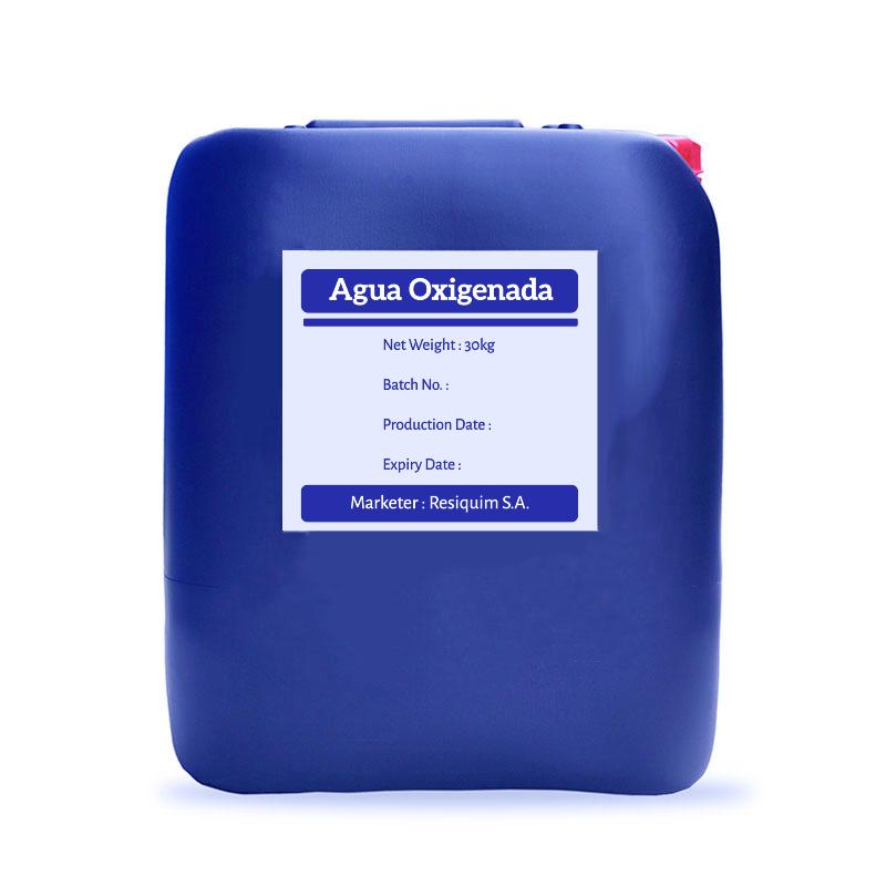 Líquido incoloro y transparente, compuesto por peróxido de hidrógeno.